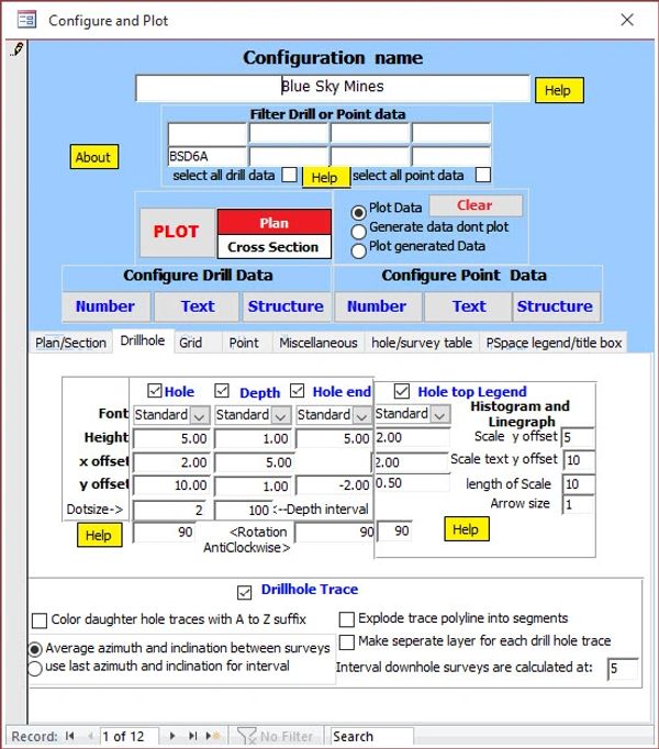 DrillXS is a Microsoft Access Application using a combination of the Microsoft Access and AutoCAD object libraries to plot drill cross sections, plans and point data in AutoCAD when linked to a drilling database.